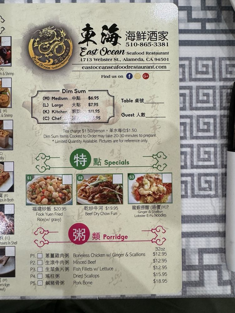 East Ocean Seafood Restaurant in Alameda, CA, offers a wide range of dinner appetizers, soups, duck and squab dishes, and dim sum options. With various amenities like outdoor seating, wheelchair accessibility, and catering services, this restaurant caters to a diverse clientele. Customers rave about the authentic dim sum experience, with standout dishes like shrimp rice rolls and shrimp fried dumplings. The restaurant's spacious layout and quick service make it a favorite spot for family gatherings and special occasions. East Ocean's focus on traditional flavors and generous portions ensure a memorable dining experience. Overall, the restaurant's welcoming atmosphere and delicious menu options make it a must-visit for seafood enthusiasts.